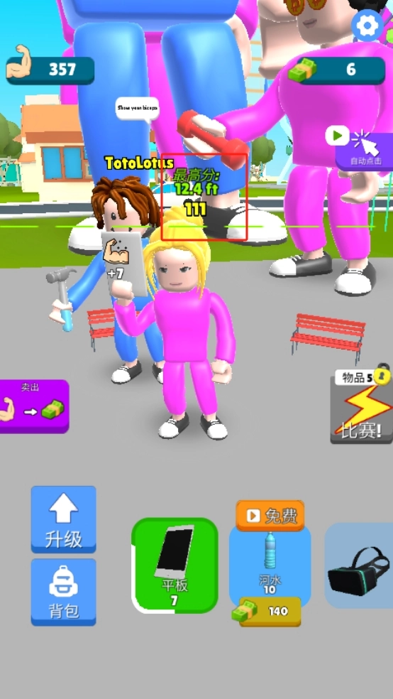 2、当角色持有平板时,可借助自动点击功能提升互动效率,与此同时留意上方的最高分等数据信息,以此来积累分数和金钱。