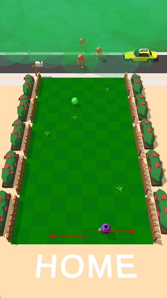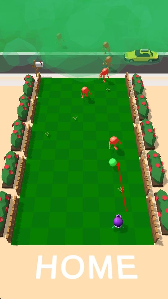 1、在草坪战场,长按拖动使左右移动,调整弹射角度与力度,瞄准红色怪物。