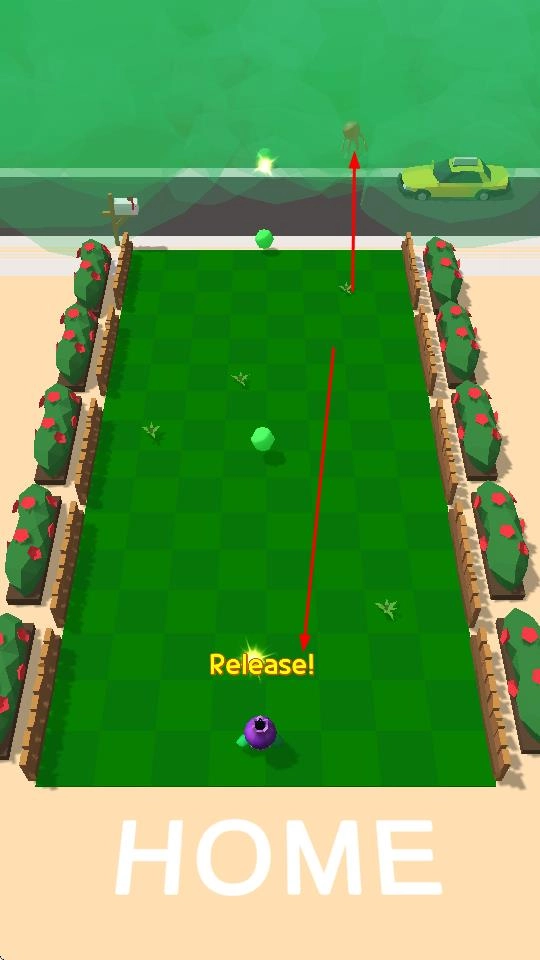 2、松开手指发射绿色球体,利用弹射轨迹,击中怪物,清除场上敌人。