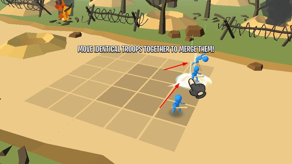2、战斗中,拖动相同兵种合并,提升部队等级,增强战力,应对更强敌人。