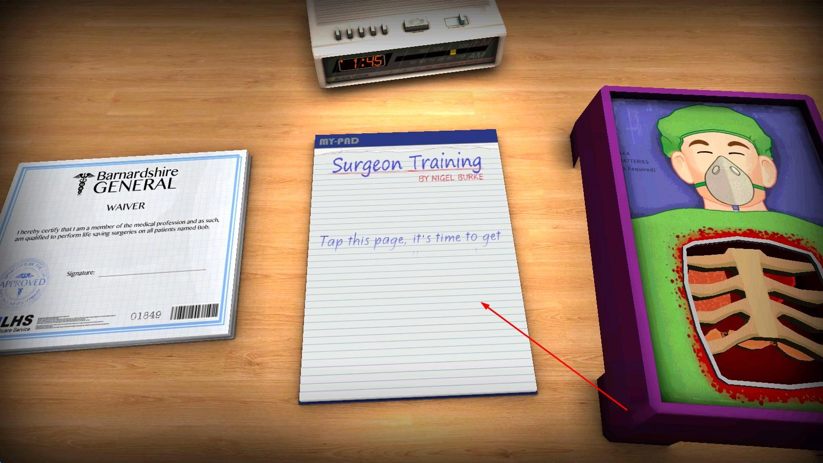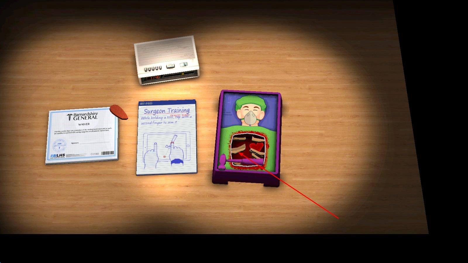 1、进入游戏,置身外科医院场景,作为专业医生接收病患,根据系统提示选取正确手术工具,准备开始手术。