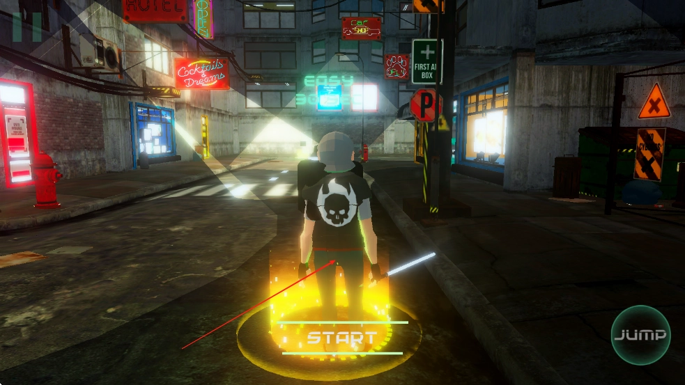 3、动态视觉呈现:光剑挥舞时会形成粒子拖尾效果,再搭配赛道上跟随节奏闪烁的霓虹灯光,加上背景场景的实时变化,共同营造出极具冲击力的视觉盛宴。