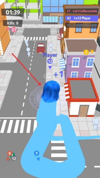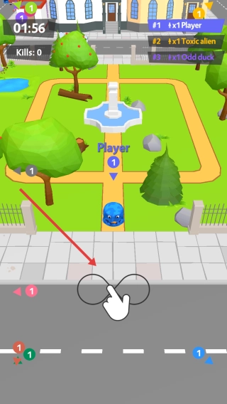 3、后续在城市、公园这类场景中,借助地形进行围堵和偷袭,不断吞噬来提升等级与增大体积,同时留意时间和剩余玩家数量,力求登上排行榜榜首,最终赢得胜利。