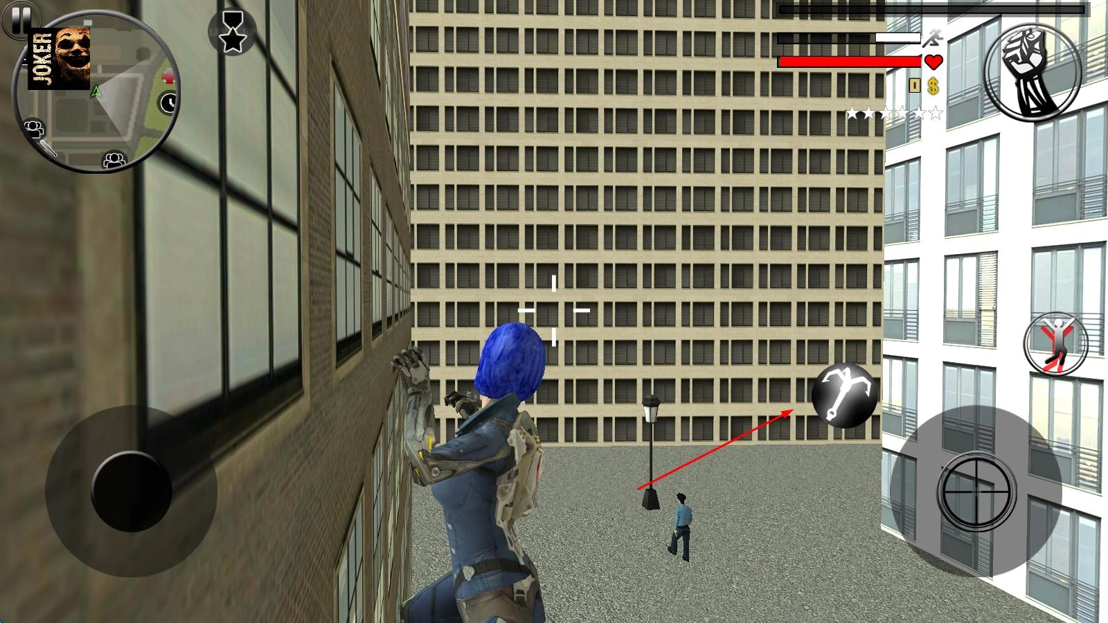 进入游戏后,操控绳索女孩在城市里移动,借助绳索技能穿梭于楼宇之间,前往犯罪现场执行任务。
