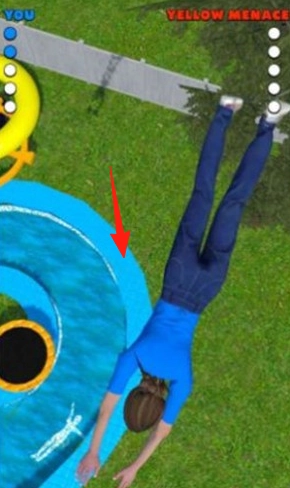 1、通过滑行操作来控制蓝色角色,让它从高处滑下,依次经过螺旋滑道、心形水池和环形浮圈,并在此过程中保持好平衡。