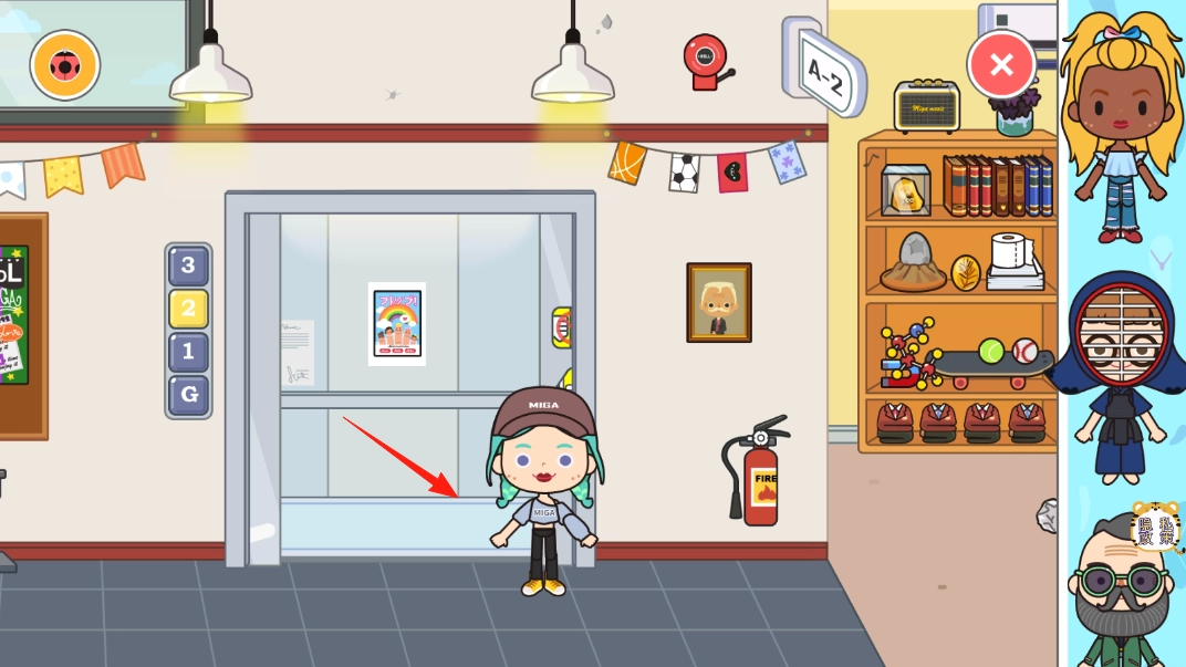 3、控制角色移动到教室门口,进入走廊区域,探索全新的场景并触发新的互动内容。