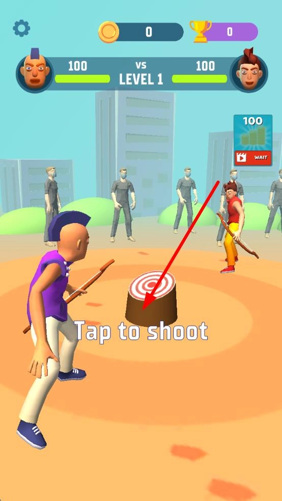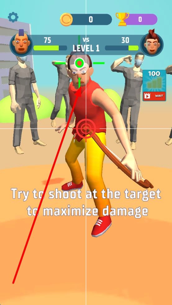 1、进入游戏后选择关卡,通过滑动屏幕来调整射箭的角度和力度,松开手指就能射出箭矢,只要命中靶心或者目标道具,就能开启闯关。