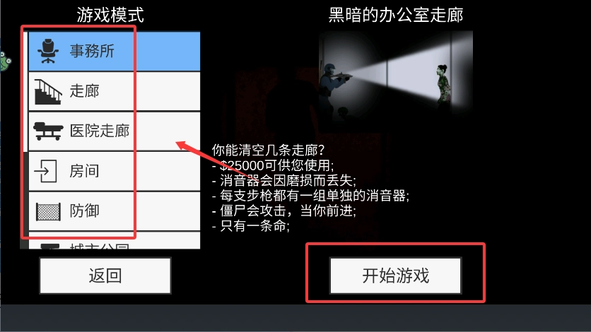 3、选择一个模式进行游玩,点击右下角开始游戏。