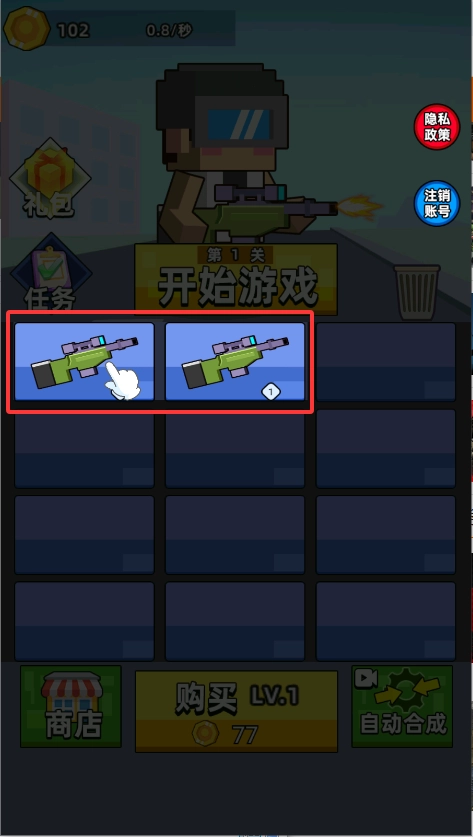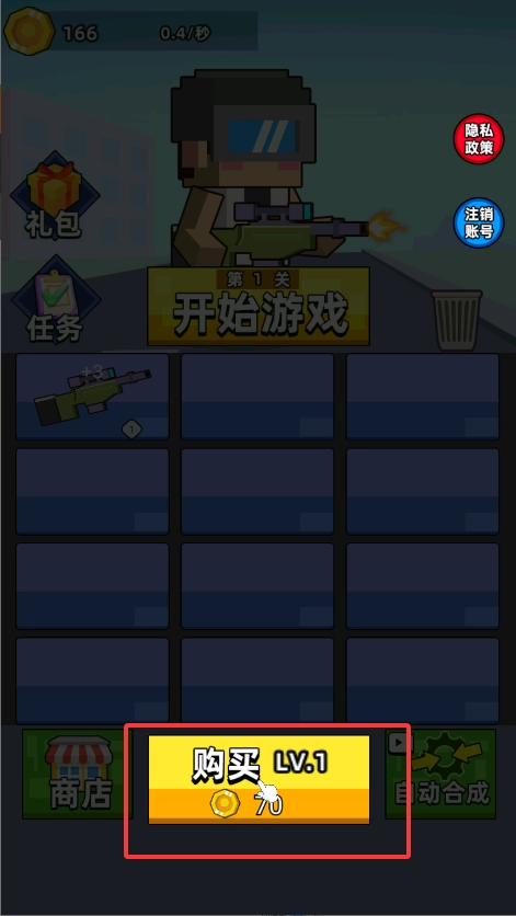 1、安装好游戏后打开,点击图示按钮购买枪械。