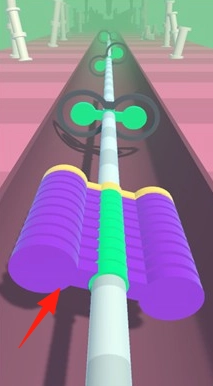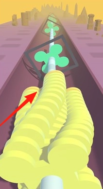 2、碰撞消除球柱与缺口匹配时,消除对应层(如黄色球柱过三叶草缺口,消除顶层),持续下落。
