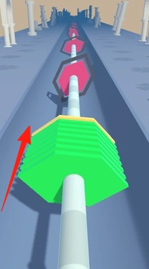 1、形状适配操控彩色球柱(黄、紫、绿),穿过路径上的同形状缺口(三叶草、圆环、八边形),保持推进。