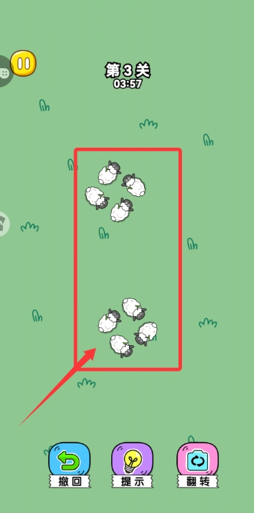 2、通过滑动屏幕选择驱赶方向,注意羊群之间的相互影响关系,避免羊群走散或卡住,必要时可以使用道具辅助驱赶。