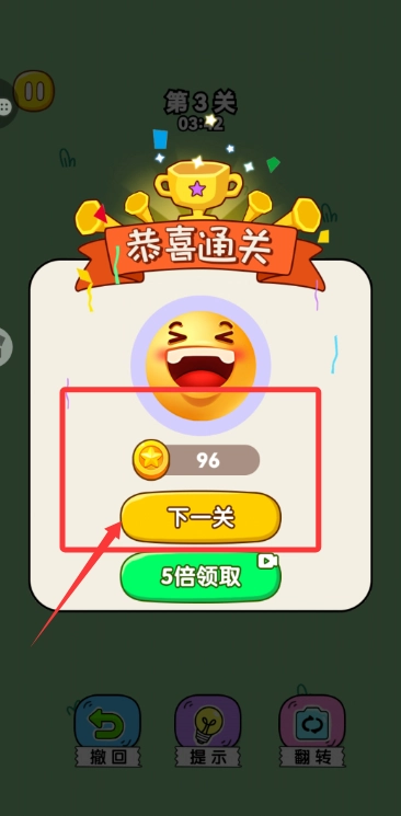 3、完成关卡后,点击图示按钮,即可进行下一关游玩。