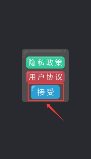 1、点击蓝色接受按钮,同意协议开始游戏。