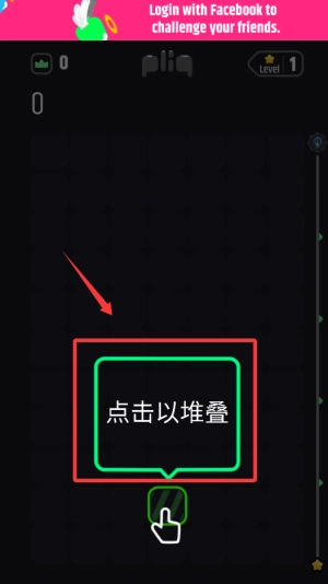 2、点击绿色提示框,完成方块堆叠操作。