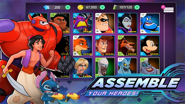 迪士尼英雄战斗模式手机版集结经典角色,在粒子特效炸裂的跨次元战场展开3D格斗,从新手村的小怪清理到灭霸级别的终极Boss,每次连招都需要搭配英雄羁绊,技能组合打破属性克制,在彩虹赛道与末日火山等奇幻场景中,体验越来越硬核的动作盛宴。