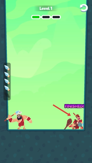 3、完成关卡:让持斧角色击败右侧的敌人,这样就能触发“FINISHED!”的结算提示。
