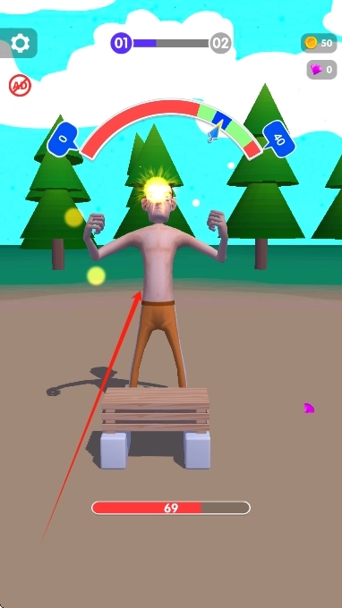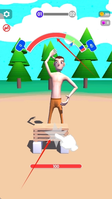 1、在新手关卡借助虚拟手臂劈砍木板,熟悉通过点击屏幕触发劈砍的基础操作。