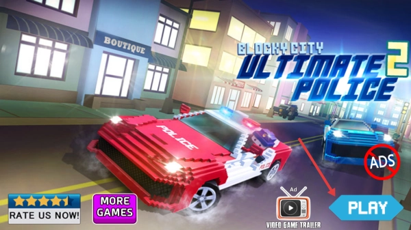 1、在主界面点击【PLAY】按钮,选择【关卡1】,驾驶红色警车驶入城市街道,开启巡逻任务。