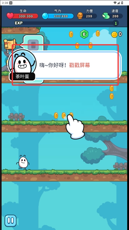 《上吧茶叶蛋》手机版是一款趣味十足的游戏,玩家将操控萌趣的茶叶蛋主角,开启包含平台闯关、BOSS对战等多种形式的冒险之旅。游戏中精美的章节场景能带来绝佳的视觉体验,完成关卡可解锁宝箱奖励,灵活运用道具还能帮助突破重重难关,让你在丰富的挑战中感受这款游戏的独特魅力与乐趣。