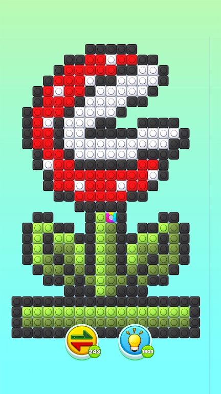 2、色彩组合千变万化,从基础三原色到渐变色系应有尽有,丰富的调色板让玩家可以自由发挥创意,打造独一无二的像素艺术作品。