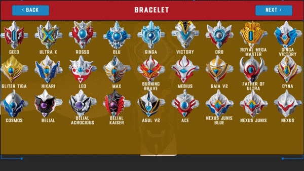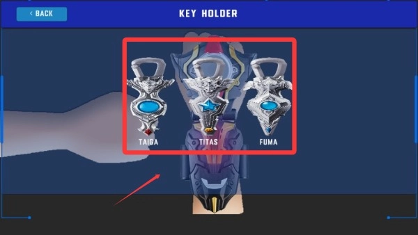 1、打开应用后,挑选自己喜欢的奥特曼形态,进入模拟操作界面,屏幕中央会展示变身器模型,底部则显示能量槽和形态切换按钮。