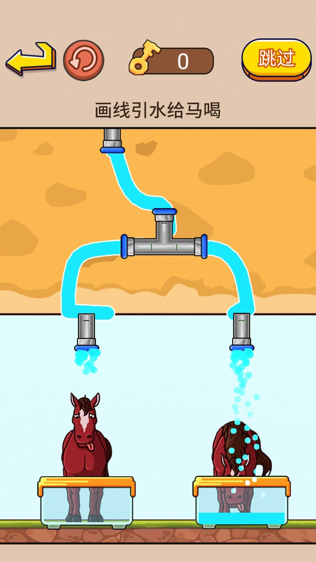 3、任务目标:玩家需要用直线连接水管,让马儿顺利喝到水,玩法富有趣味。