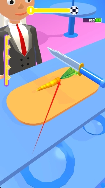 1、精准切割技巧:长按屏幕可调整下刀角度,切割圆形食材时沿中线点击,确保切片厚度均匀达到星级标准。