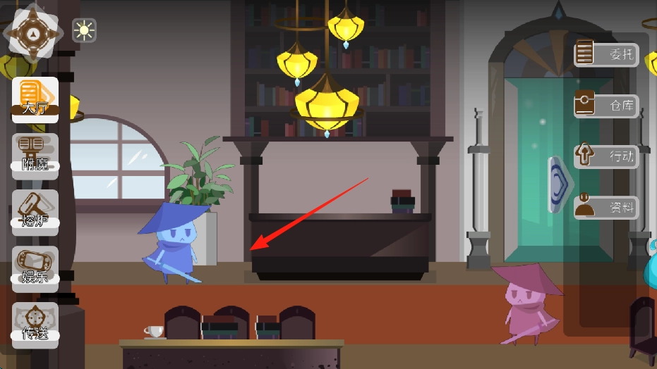 3、回到大厅后,和场景里的元素进行互动,就能查看委托、仓库等内容,为接下来的冒险做好准备。
