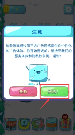2、这里需要接受游戏用户条款,点击右边好的。
