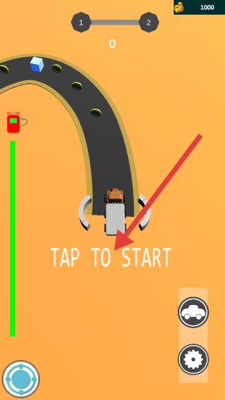 1、进入起始界面后,点击【TAP TO START】按钮启动小车,行驶过程中留意道路上的加油、金币等道具,尽可能收集以储备充足资源。