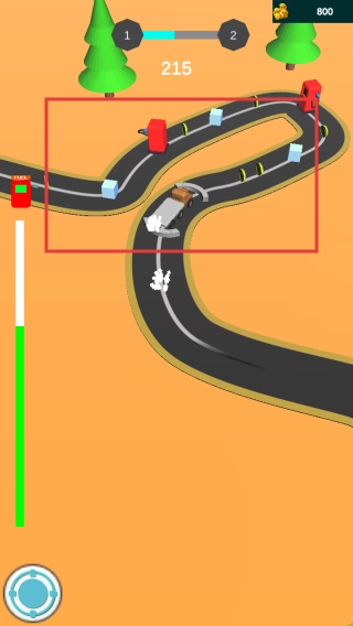 2、驾驶小车沿着弯道行驶,避开红色障碍与白色方块,控制车速转弯,保持既定路线,努力完成全程行驶。