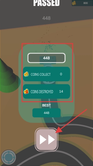 3、挑战成功后,查看【coins collect】等数据,点击箭头按钮进入下一关,通过持续积累金币来升级车辆。