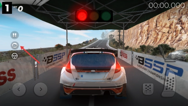 1、在赛道起点等待红灯时,点击左侧的回放图标,就能记录或回看驾驶过程。