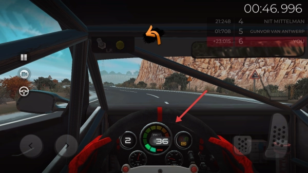 3、留意车内仪表盘上显示的时速(例如36),通过调节油门与刹车,实现高效的竞速。