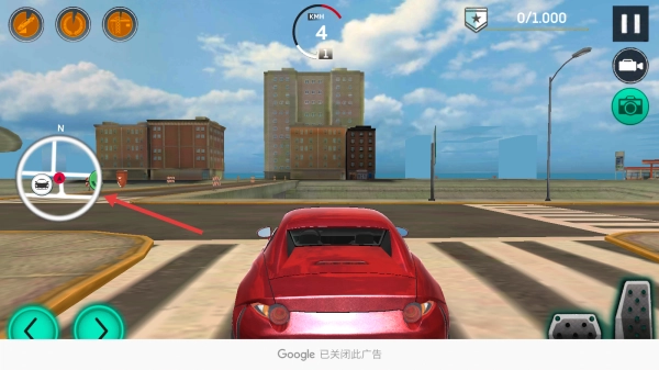 3、借助小地图规划路线,通过虚拟按键操控车辆,在城市道路上行驶、漂移,达成各项挑战。