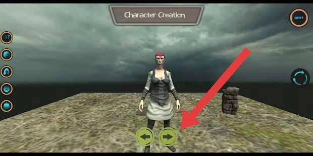2、在角色创建页面,通过点击箭头所指的左右按钮来调整角色外观,完成“Character-Creation”后即可进入游戏。