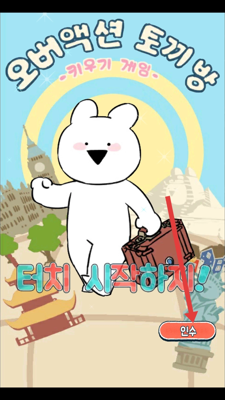 1、进入夸张的兔子屋游戏界面后,点击右下角红色的【인수】按钮,即可进入账号登录相关界面。