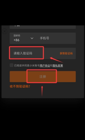 3、然后将收到的验证码输入,然后点击注册即可。