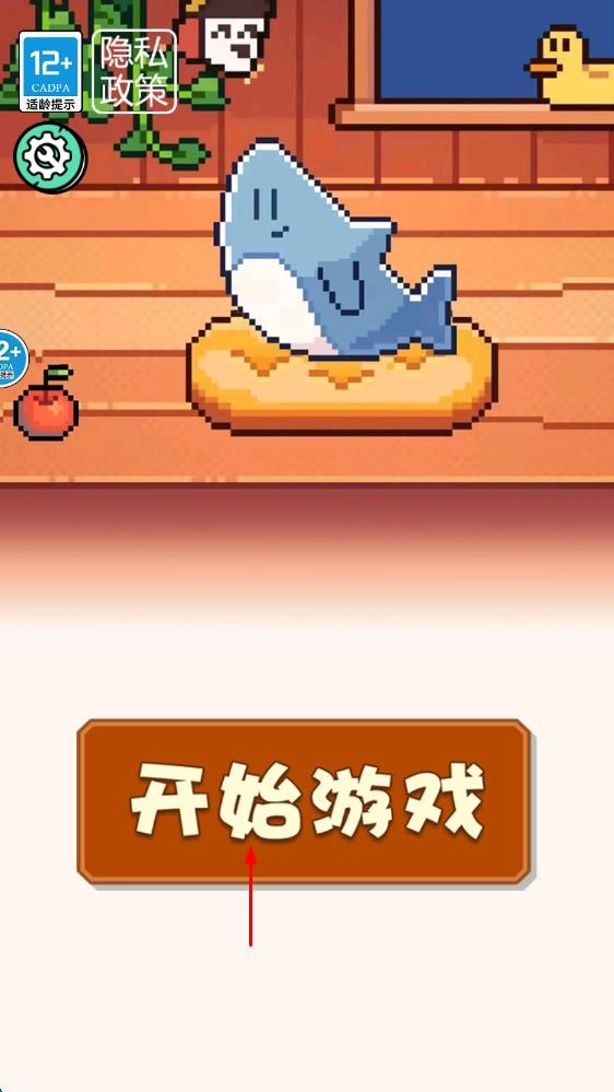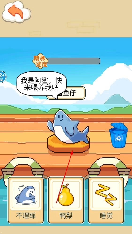 1、打开养只小鲨鱼游戏,领养第一只小鲨鱼,按照提示给它挑选初始喂食类型,开启像素宠物的养成之旅。
