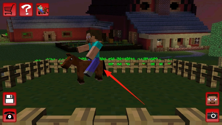 1、在像素风山谷牧场里挑选出第一匹棕红色的小马,做好喂食、梳毛这类基础护理工作后,开启首次马背骑行训练。