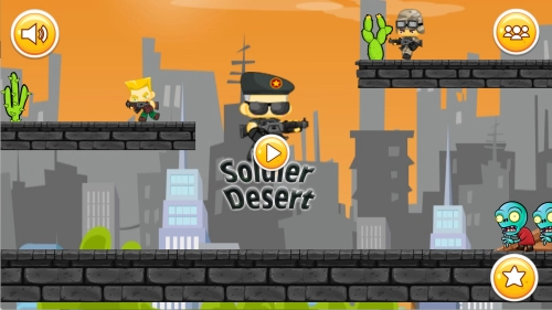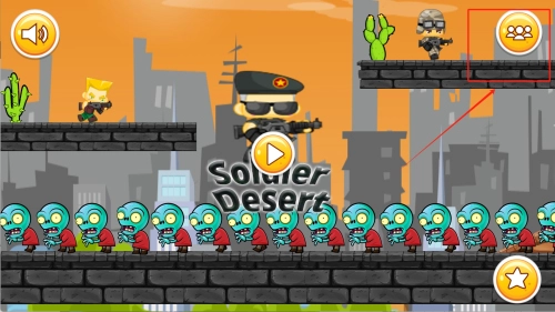进入游戏后,点击主界面的“Soldier Desert”即可开启关卡,留意右上角红框标注的组队图标,通过它可以邀请好友一同协作战斗。