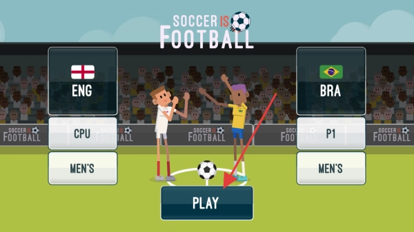 1、选择英格兰队(ENG)或巴西队(BRA),将ENG设为CPU操控,BRA设为P1操控,点击【PLAY】按钮开启足球赛,感受精彩对决。