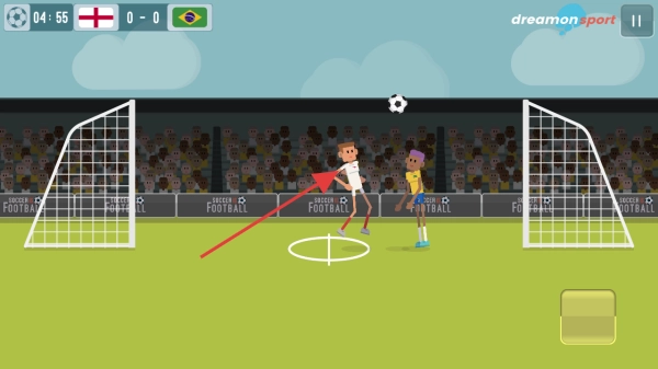 2、比赛过程中,控球球员需完成争顶、传球等动作,避开对方防守球员的拦截,抓住合适的机会进行射门,同时要留意当前时间(04:55)和场上比分,全力争取进球得分。