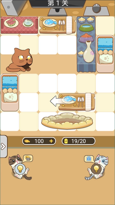 这款游戏采用超简单的华容道玩法,玩家需对比障碍物的长度与方向,通过移动障碍物来助力可爱的小猫咪成功脱离险境。