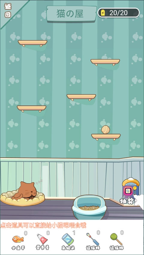 另外还有“猫的小窝”玩法哦,在这里你可以和小猫咪一起互动,可以喂食增加体力值等等。