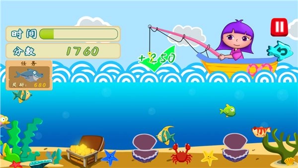 这款游戏采用卡通风格的画面设计,核心乐趣围绕钓鱼玩法展开,对儿童玩家具有很强的吸引力。