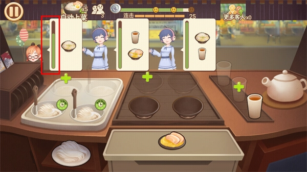 绿色条代表着客户等待时的心情状态,要留意别让客户长时间等待。一旦绿条变成红色,就可能失去顾客,进而影响任务目标的达成。