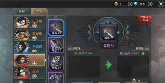 解锁完属性后,新的问题又出现了——解锁出来的属性可能并非你理想中的,这时候就需要用到洗练属性功能。每次可以选定一个属性进行洗练,消耗一颗洗练石,之后会随机得到一个新属性,有可能是弓手的,也可能是步兵的,还有可能是骑兵的,完全没有固定规律,全凭运气!虽然最终出现什么属性我们无法控制,但选择保留哪个属性的决定权却在我们手中。