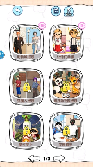3. 如图所示,玩家可点击画面下方的翻页按钮浏览更多关卡,选择感兴趣的主题关卡即可开启解谜挑战。